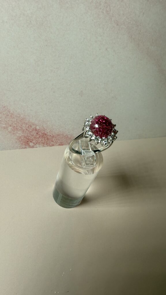 I create your custom piece. Your ashes are handled gently and kept separate, labeled and protected at all times. I carefully place them into the jewelry design or memorabilia design that you choose, and then set them in resin depending on the style. Every step is done with intention and respect.