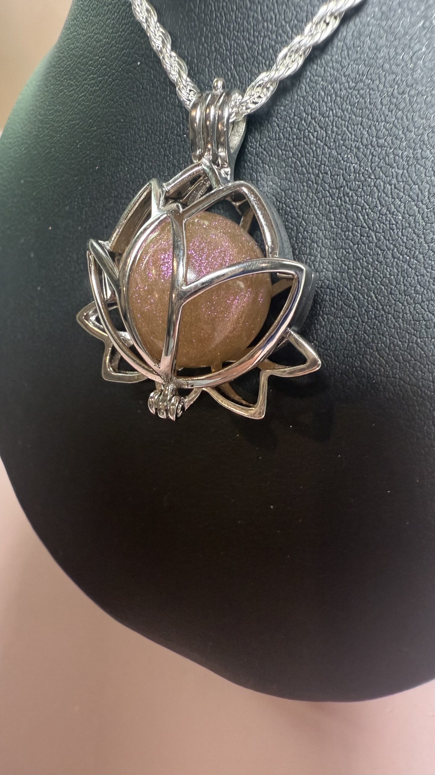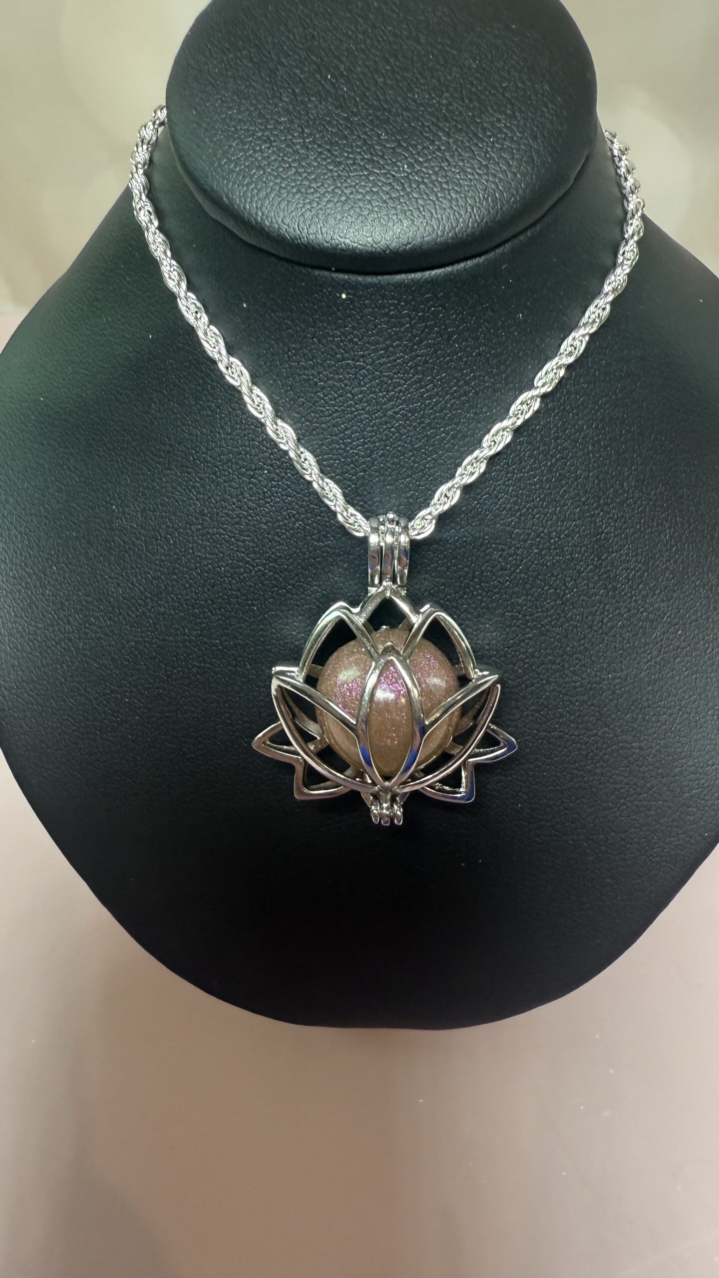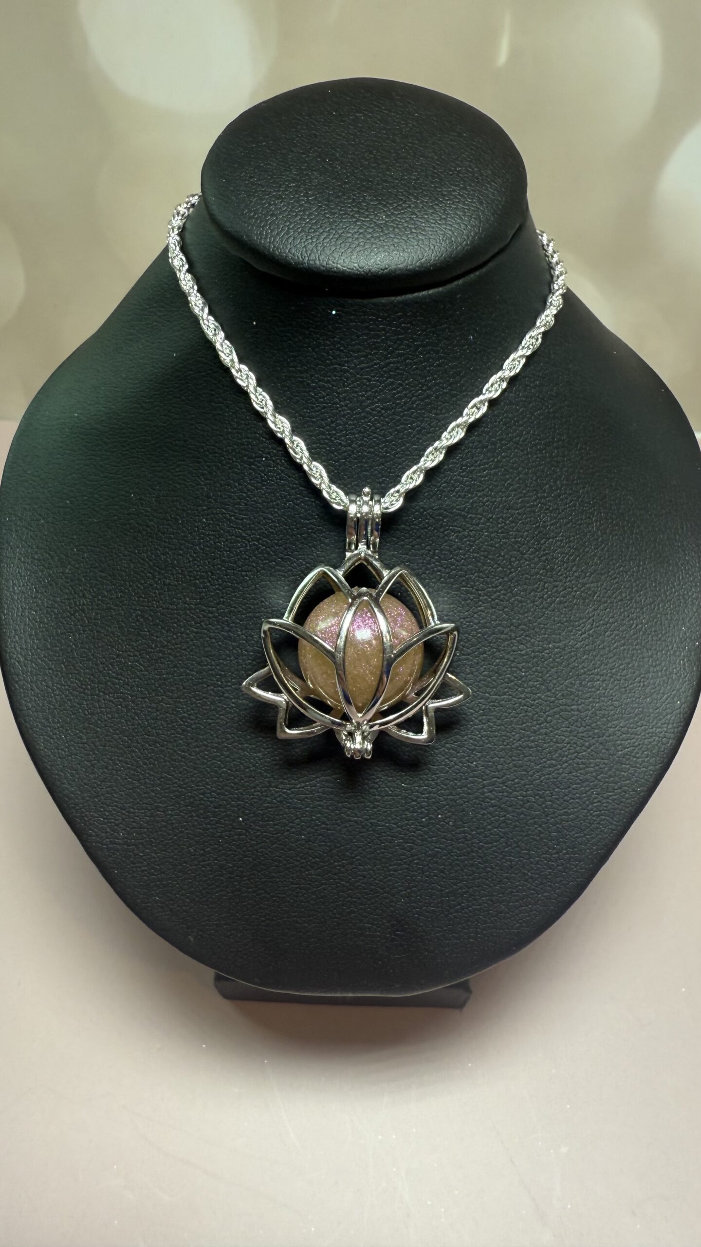 .925 Sterling Silver. The lotus flower represents the circle of life and symbolizes a pure heart. I can create any color stone for you. Necklace not included.